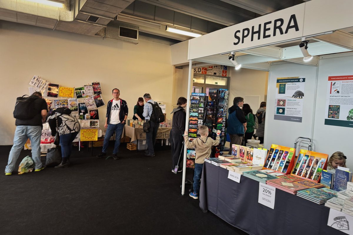 Součástí Comic-Conu je i letos výstava Kniha Brno, kde se opět sešli asi všichni významnější nakladatelé a samozřejmě i spousta těch menších. Protože "střední proud" sleduju, zaujaly mě spíše menší stánky, a to konkrétně Map Cards a jejich kniha o pitomých ptácích celýho podělanýho světa, a pak nakladatelství Veles, které má ve svém portfoliu hned několik zajímavých gamebooků. Původní plán neutrácet vzal rychle za své, už kvůli velkému množství slev, které nakladatelé na festivalu nabízejí. Tomu se nedá odolat, podobně jako když Filip ukazuje na nápis pivovaru Pelhřimov, a to máme jedenáct hodin…