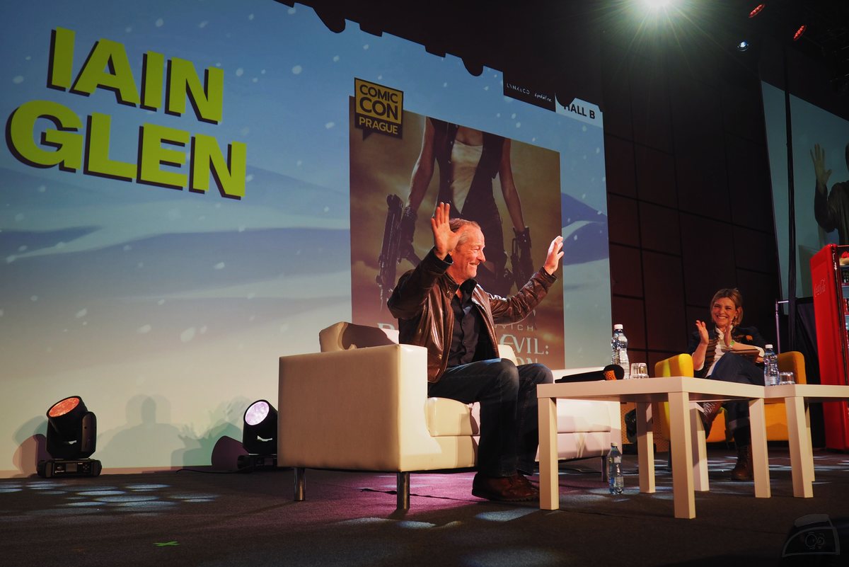 Nejen my, ale i Bětka přeběhla na hlavní stage, kde se už chystal Jorah Mormont, tedy herec Iain Glen, na kterého jsem se dnes těšil nejvíce a který byl v seriálu Hry o trůny fenomenální, i když se mu Daenerys sbalit nakonec nepodařilo, narozdíl od spousty dalších. Taky se rozpovídal dost sám i bez otázek, ale bylo to pro publikum, a myslím, že i pro Bětku, daleko příjemnější než ten předchozí panel. Charismatický herec se za ty roky moc nezměnil a velmi dobře se poslouchal a hlavně byl rád, že natáčel spíše v jižních státech na rozdíl od herců z jiné dějové linky, kteří mrzli.