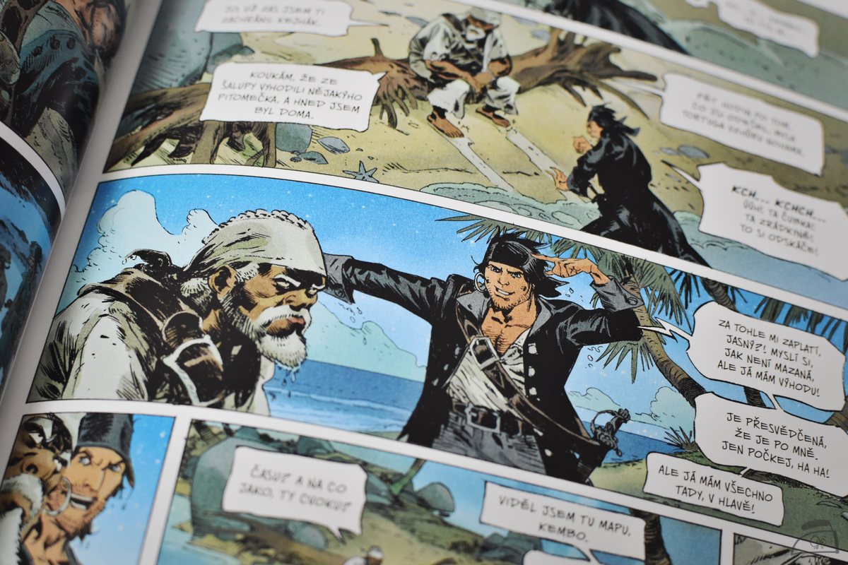 Omlouvám se za malou odbočku a vlastně nemám nic proti Ravenovi, je to dobře napsaný a skvěle nakreslený komiks. Pohodové vyprávění pro všechny generace, prostě takové "Velké dobrodružství piráta Ravena". V tomhle ohledu jsem byl vlastně spokojený, sto dvacet stran jsem přečetl na jeden zátah a těším se na pokračování. Nicméně, napjatě očekávám i nějaký "odvážnější" pirátský komiks.