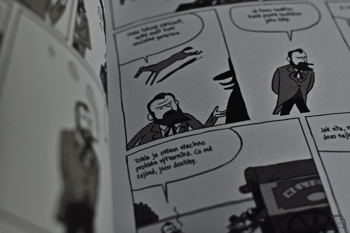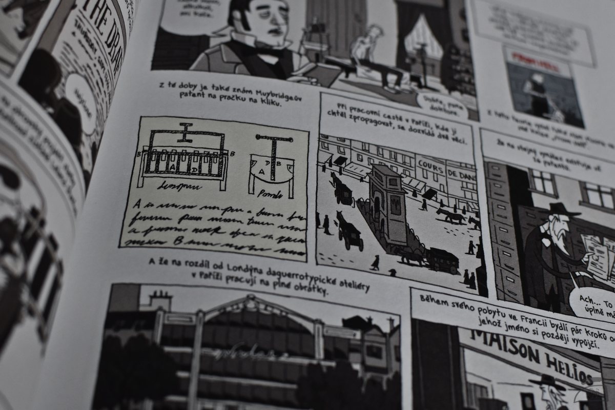 Celý příběh začíná v roce 1850, kdy se Eadweard Muybridge naloďuje a míří směrem ke svému americkému snu. Retrospektivně se pak ale podíváme i dále do minulosti, k samotnému vzniku fotografie a konkrétně v tomto ohledu nás v komiksu čeká spoustu zajímavostí. Pokud se o fotografii zajímáte, jistě už budete tyto slavné momenty (a momentky) znát, a i přes to si myslím, že se během čtení nudit nebudete, a to ani na chvíli.