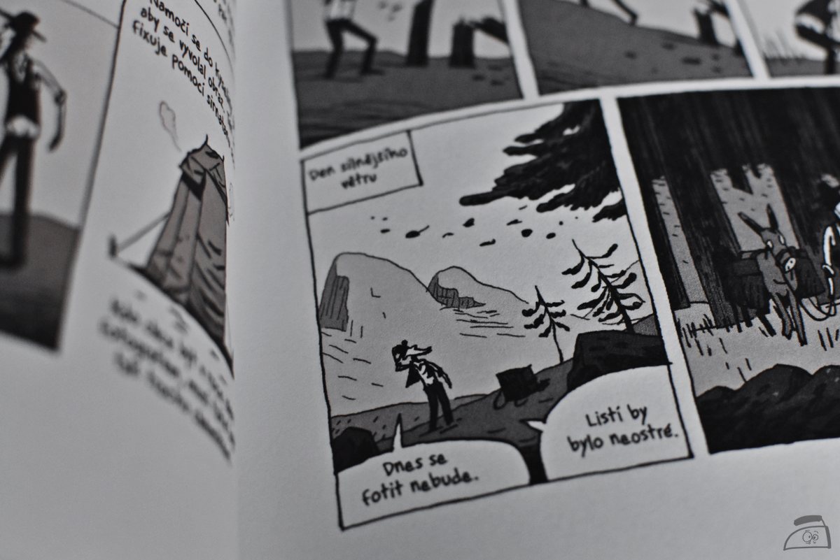 Komiks Ve zlomku vteřiny na první pohled zaujme pevnou vazbou a také obálkou, na které vévodí žlutá barva. Ono i těch více než dvě stě stran uvnitř není pouze černobílých, ale v některých případech kresba velmi chytře a stylově přechází i do barev. Poctivě zpracované knize pak chybí snad jen záložka, ale budu předpokládat, že byl Guye Delisle přesvědčen, že jeho komiks během čtení zkrátka neodložíte.